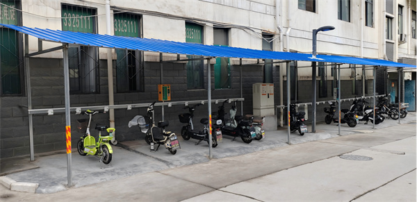 鼓楼社区新增6个充电车棚,100个充电端口,安装充电桩80米。