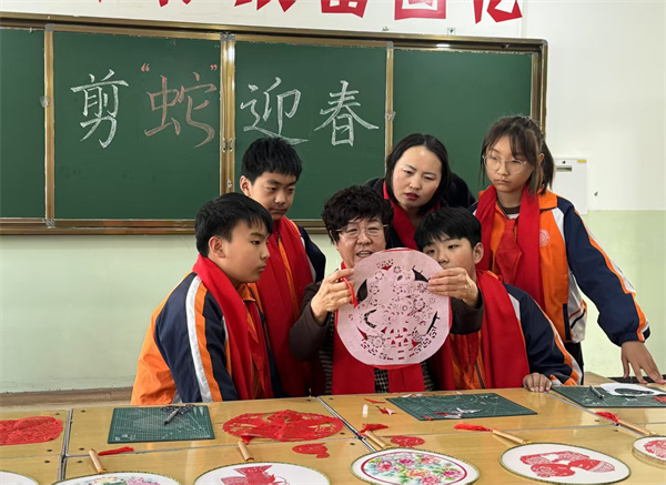 剪纸课结束后,田素英和学生们一起欣赏着手中的作品,满眼欣慰和知足。对于学校今年的最后一节剪纸课,田素英表示很满意,她告诉记者:“马上过年呀,我和孩子们一起做了很多蛇元素的作品,希望把这些作品贴到更多人家里,贴出过年喜悦的心情,贴出欢乐祥和。”(王荣 王晓丽)